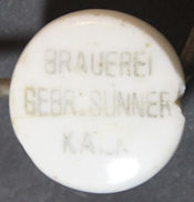 Schwarz: "BRAUEREI" "GEBR. SÜNNER", "KÖLN-KALK"