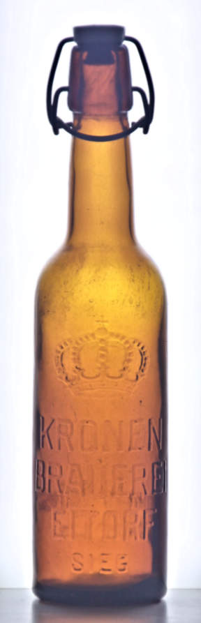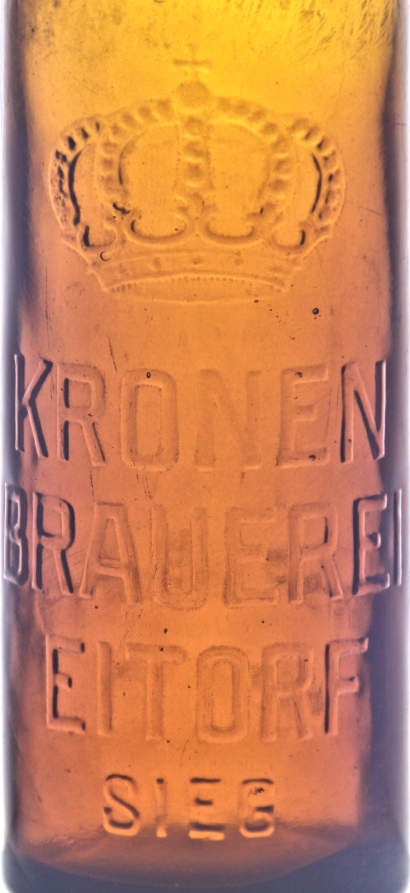 (rot, zylinderförmig): "KRONEN" "BRAUEREI" "EITORF"