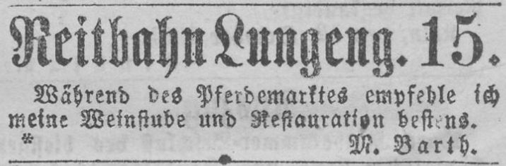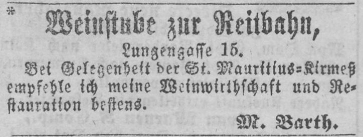 Anzeige der Weinstube zur Reitbahn von Michael Barth aus dem Jahr 1861