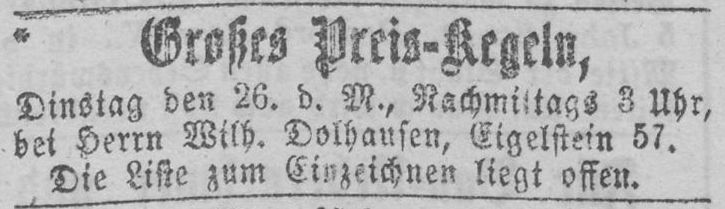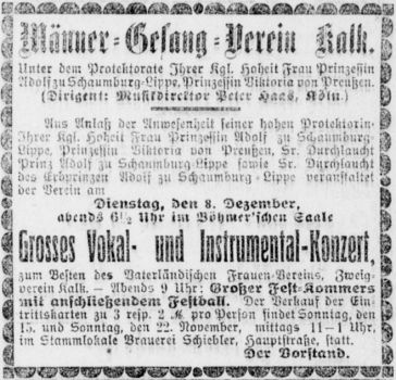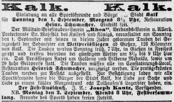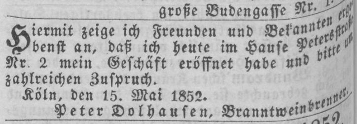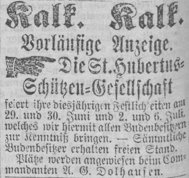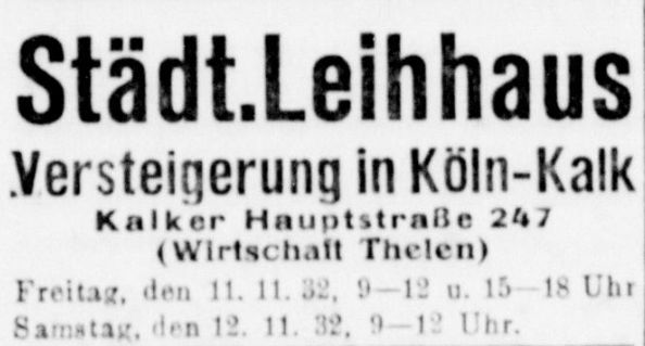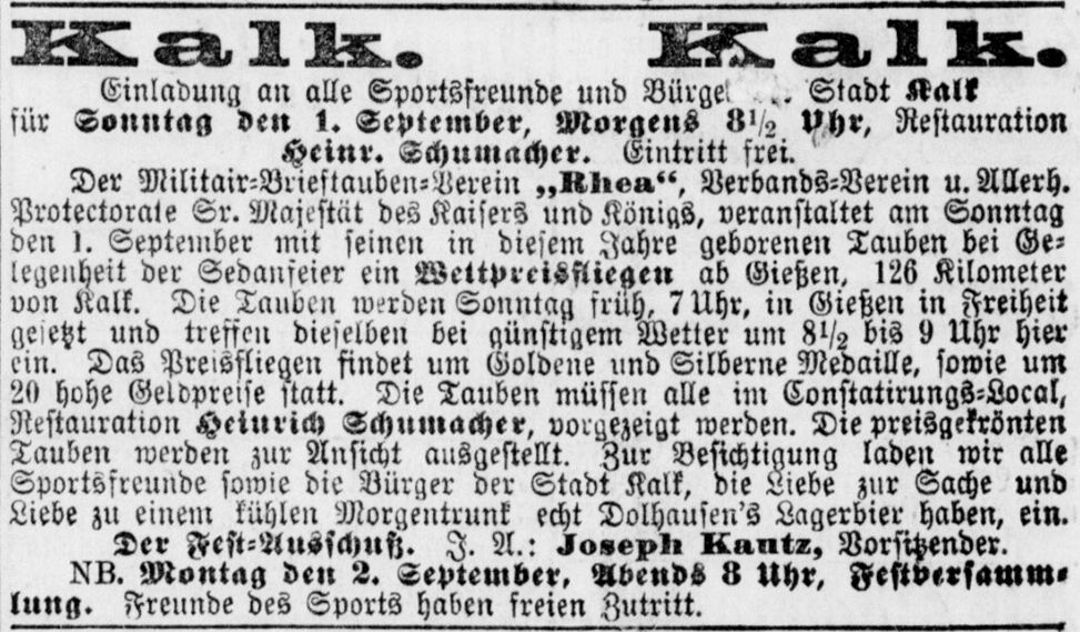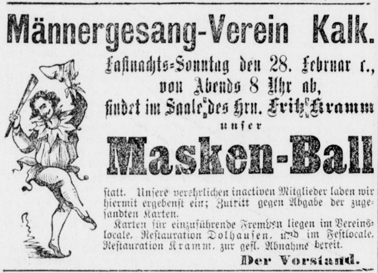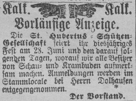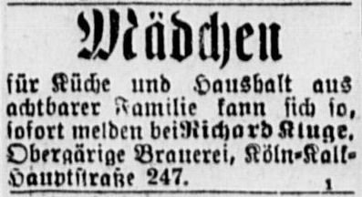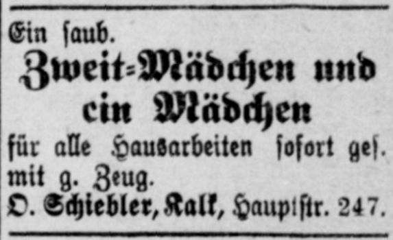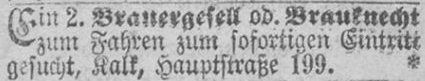 in der Hauptstraße 199 in Kalk. Auch hier ist der erste Nachweis eine Anzeige, in