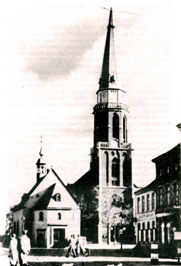 Foto der Kalker Kapelle aus dem Jahr 1902. Rechts dahinter die St.
