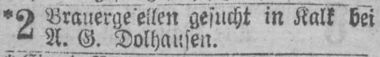 [7, 24.09.1870] „…Erster Brauergesell gesucht. A.G. Dolhausen