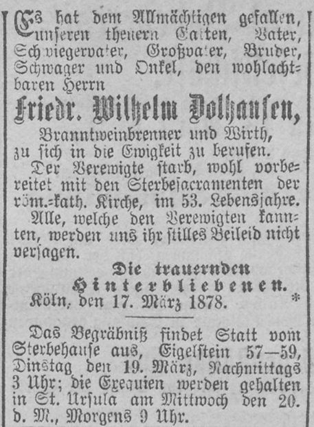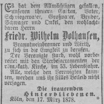 (* 1829; † 1896) vor Übernahme der Brauerei eine Schenkwirtschaft in Köln,
