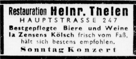 Anzeige der Restauration Heinr. Thelen aus dem Jahr 1934. Im Angebot: 1a