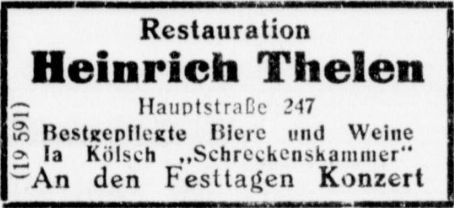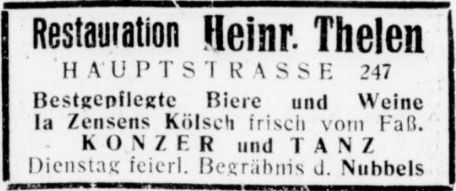 Anzeige der Restauration Heinr. Thelen aus dem Jahr 1934. Warum der Nubbel