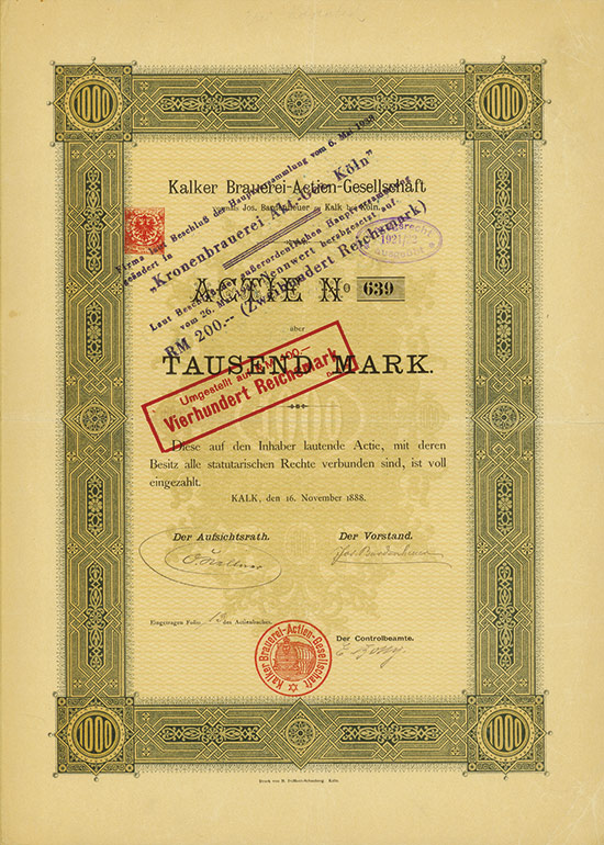 Im Jahr 1889 wurde Bier der Kalker Brauerei-Actien Gesellschaft