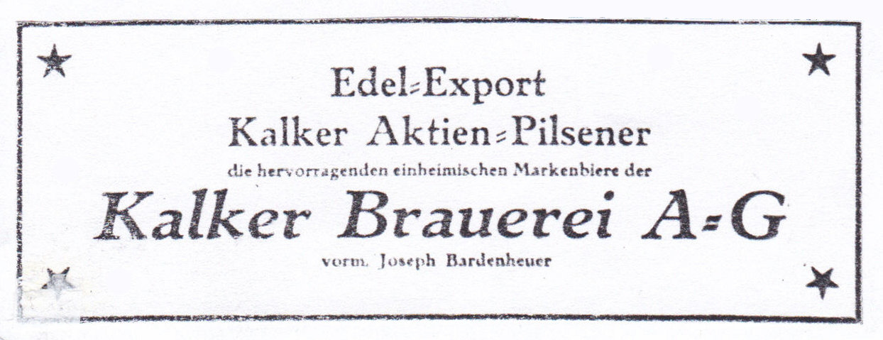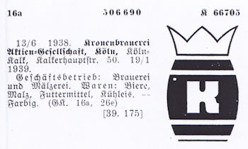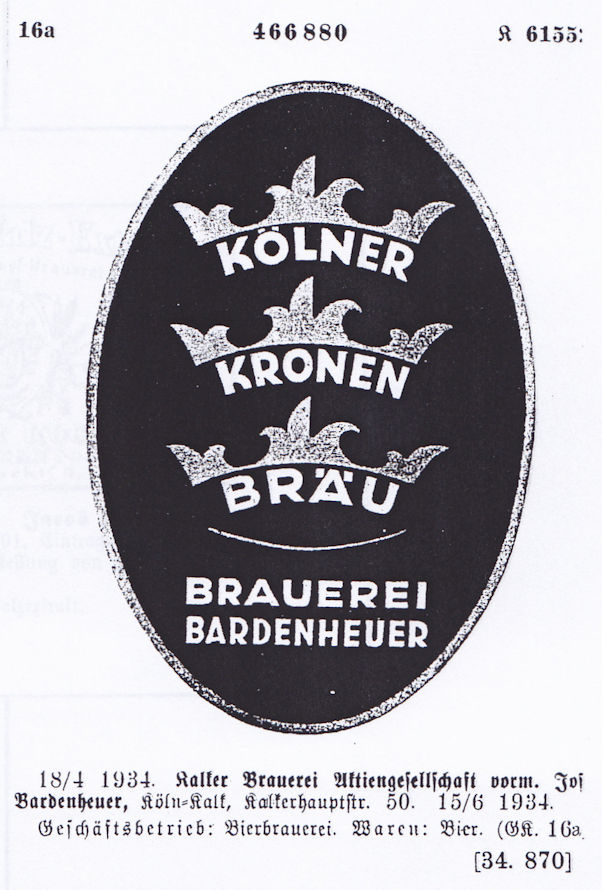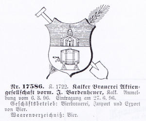 Entsprechendes Warenzeichen wurde 1934 für die Kalker Brauerei AG