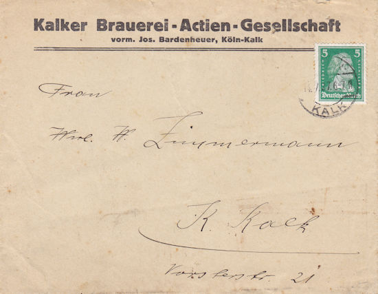 Die Firmenadresse ist hier bereits die der Dom-Brauerei in Bayenthal. Die