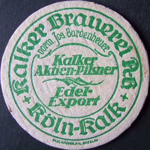 Kalker Brauerei AG. Bis auf Hersteller (Schäffer AG, Breslau)