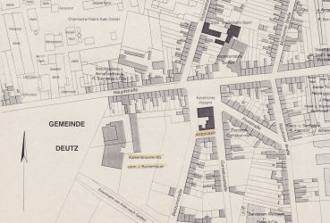 Ausschnitt aus einem alten Lageplan von Deutz und Kalk. Zu sehen ist die