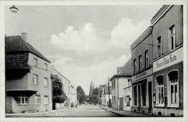Postkarte "Heumar, Bez. Köln". Einziges Highlight der trüben Kulissen ist
