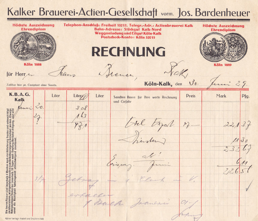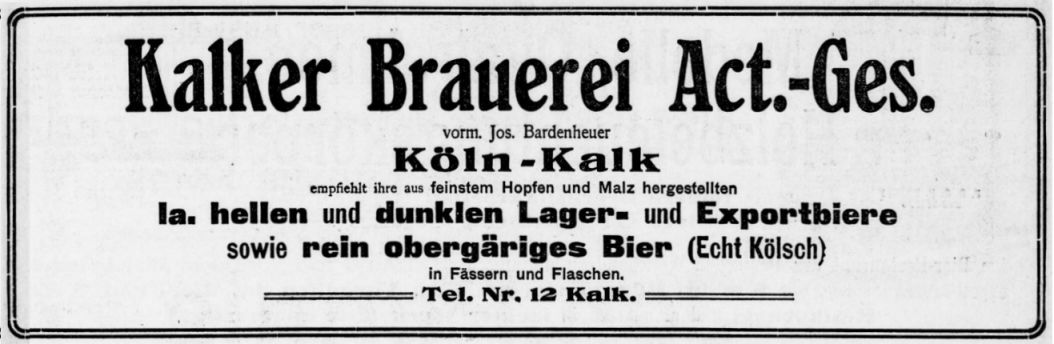 Das Bier der Kalker Brauerei stand also "im ganzen Rheinlande