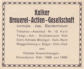 Kalker Brauerei-Aktien-Gesellschaft, vorm. Jos. Bordenheuer.