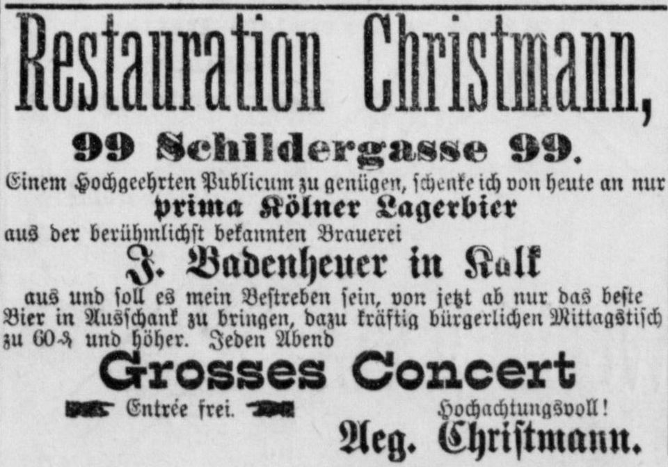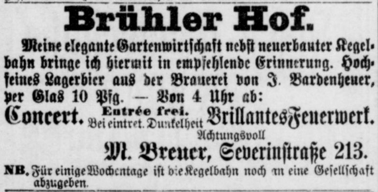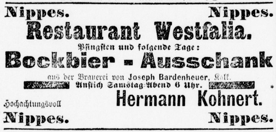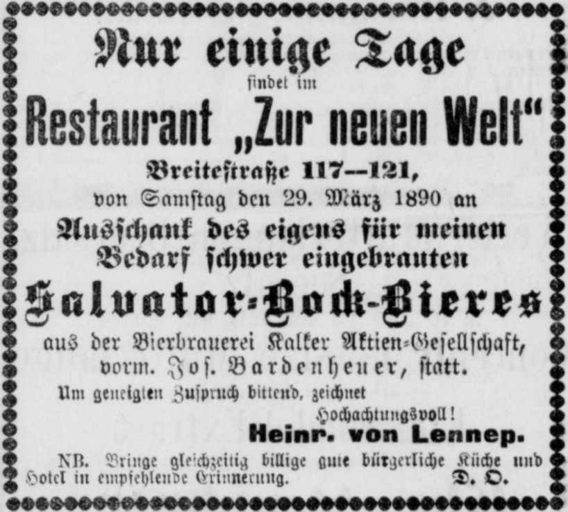 gutem Rufe. Zu den besten Kölner Lagerbier=Brauereien zählt schon von Alters