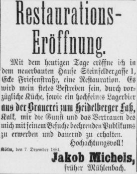 Das "Heidelberger Faß" in Köln Deutz gab es schon wesentlich früher als die Brauereigründung im Jahr 1878 vermuten