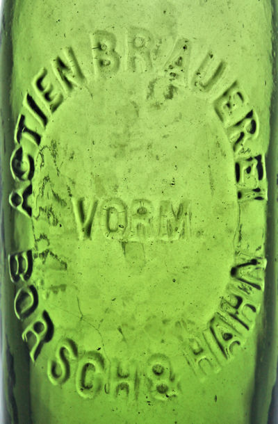 Schwarz. Bogen oben: Mülheim-Niedermendiger", gerade "Actien-Brauerei"