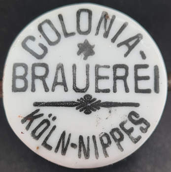 - Schwarz: Bogen oben; "COLONIA", Stern, mittig: "BRAUEREI", Strich, Bogen unten: "KÖLN-NIPPES"